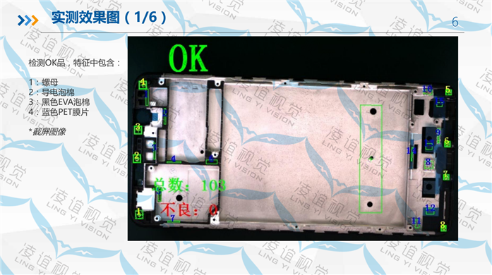 手機殼輔料檢測設備采用先進的視覺影像識別算法和架構,設備放置在流水線上實時在線檢測,精度高,識別效率高,帶聲光報警及自動剔除。可以識別手機殼件上的輔料漏裝,可識別黑色殼體上黑色泡棉的有無、零部件漏裝,倒裝,錯裝,堵孔等加工缺陷。能有效提高出貨品質及減少客訴。應用于手機殼體加工、結構組件、CNC加工、手機殼注塑、手機整機加工、電子產品加工行業等。